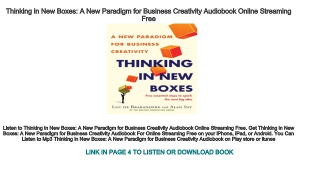 It is that rare business book actually worth reading cover to cover. A well thought out approach and a hands-down, must read for anyone tirelessly in pursuit of achieving success in an ever evolving and rapidly changing global business ecosystem. Management Psychology Personal Growth Category: Management Psychology Personal Growth Audiobooks. Buy the Audiobook Download: Apple Audible downpour eMusic audiobooks. About Thinking in New Boxes When BIC, manufacturer of disposable ballpoint pens, wanted to grow, it looked for an idea beyond introducing new sizes and ink colors.
